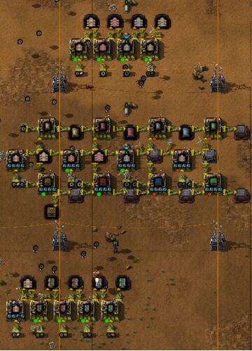 Factorio Krastorio2 (15日目) Krastorio2ではロボットの持てるアイテム数がずいぶん多いような…? 物流ロボットの最大貨物数17個! 多分これが最大 1ロボットで17個なら、10ロボットで170個も運搬できる。これならロボット物流だけの製造工場でも良いんじ…