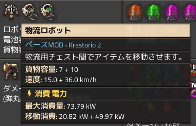 Krastorio2ではロボットの持てるアイテム数がずいぶん多いような…?