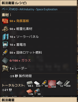 衛星は部品が面倒すぎるので、今まで作った在庫を持って行く。1スロット1個だから邪魔だけど…。